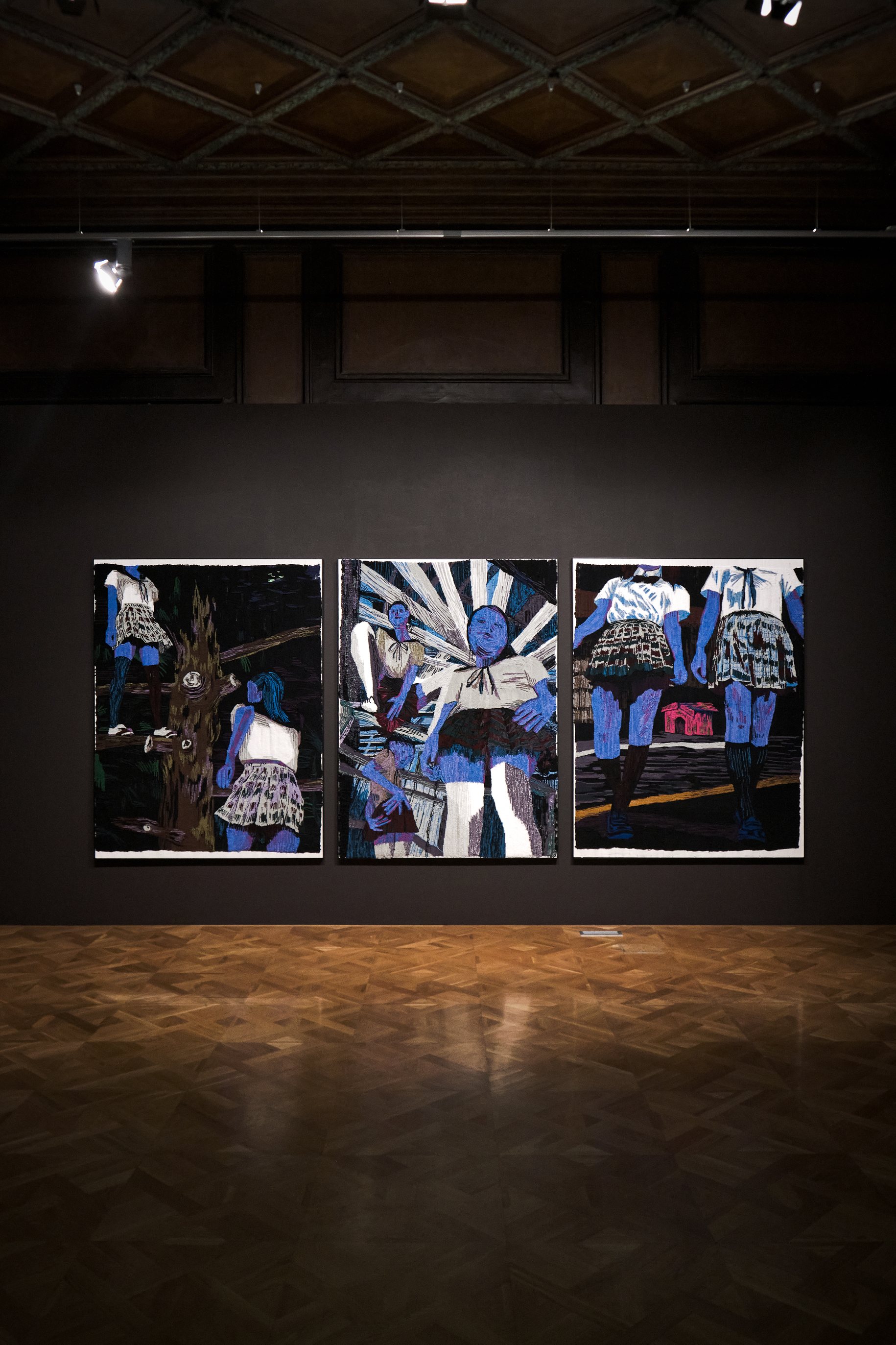 Tufted organza ribbon, Triptych (468 x 206 cm / 184.25 x 81.10 in)